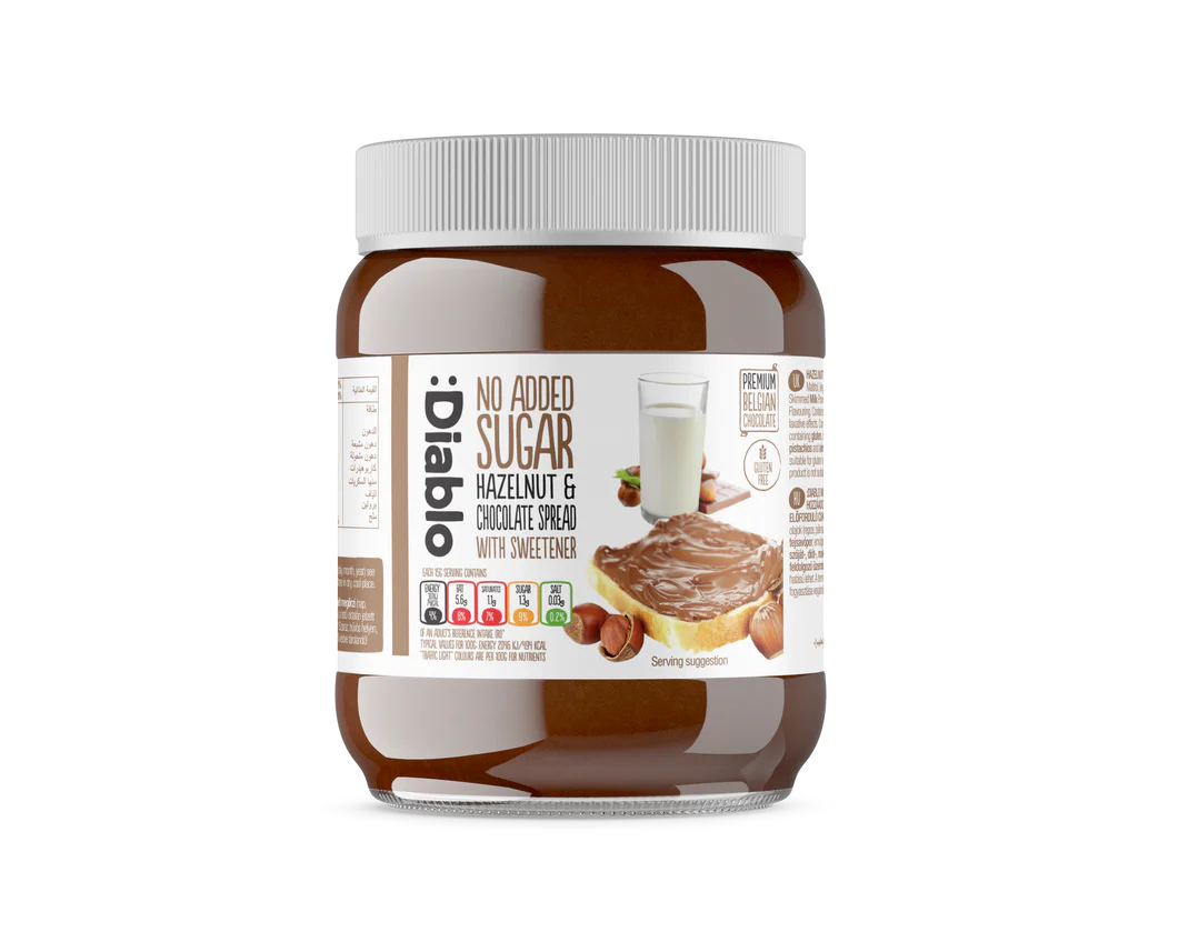Maltitol ,vegetable oil (rapeseed, palm), hazelnuts 13%, fat reduced cocoa, skimmed milk powder 7%, whey powder (milk), emulsifier 0,5% (sunflower lecithin), flavoring.