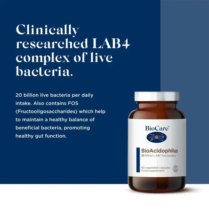 - BioAcidophilus is a blend of the unique, clinically-researched LAB4 complex of live bacteria for everyday use
