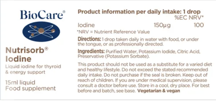 • Optimum support – Easily absorbed and used by the body liquid form providing 150µg of iodine per drop