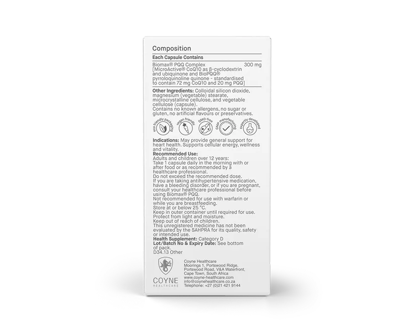 Until recently, the only options for aging individuals to boost their declining mitochondrial numbers were long-term calorie restriction and exhaustive physical activity – often difficult or impractical for aging people. Now, Coyne Healthcare offers an alternative: Biomax® PQQ and MicroActive® CoQ10, a 24-hour active coenzyme Q10 supplement that promotes spontaneous production of new mitochondria.