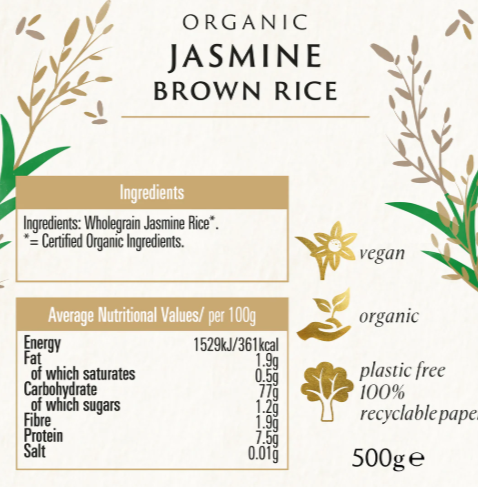 Wholegrain Jasmine Rice* * = Certified Organic Ingredients.