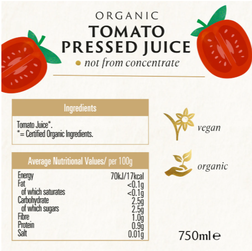 Tomato Juice* * = Certified Organic Ingredients.