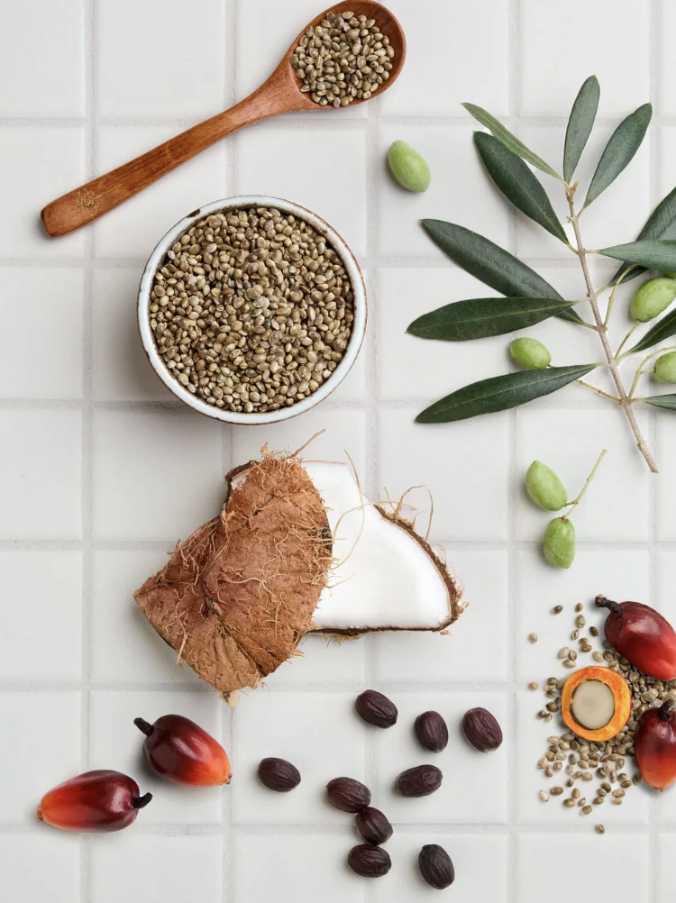 Water, Organic Coconut Oil,*± Potassium Hydroxide,† Organic Palm Kernel Oil,*± Organic Olive Oil,*± Mentha Arvensis, Organic Hemp Seed Oil,± Organic Jojoba Wax, Mentha Piperita, Citric Acid, Tocopherol, Limonene