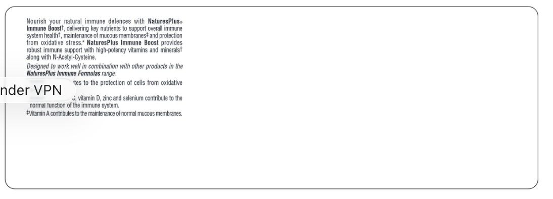 *Vitamin C contributes to the protection of cells from oxidative stress, normal function of the immune system, normal collagen formation for the normal function of blood vessels, bones, cartilage, gums, skin, teeth. Vitamin C increases iron absorption and contributes to the reduction of tiredness and fatigue. †Vitamin D contributes to the normal function of the immune system, normal absorption and utilisation of calcium and phosphorus, maintenance of normal muscle function and maintenance of normal bones and teeth. ††Vitamin A contributes to the normal function of the immune system. ‡Selenium contributes to the normal function of the immune system and to the protection of cells form oxidative stress.
