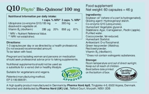 Q10 Green 100 mg is Pharma Nord’s vegan friendly Q10 capsule containing ubiquinone in its natural form. This unique preparation delivers coenzyme Q10 in the active formula that is present in over 90 scientific studies to provide a consistently high level of bioavailability.
