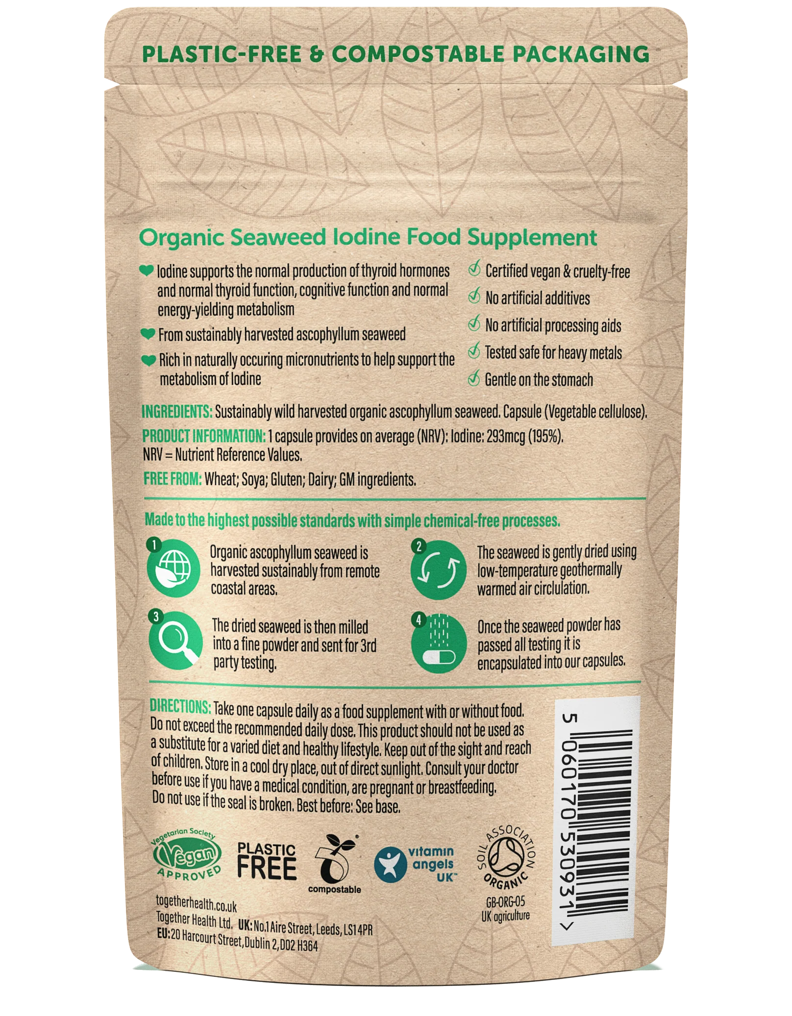 Our seaweed is not only super rich in iodine, but is brimming with all the necessary trace* minerals and micronutrients to deliver and metabolise iodine, including selenium, tyrosine, zinc, copper, vitamins A, B2, B3, B6 and C. Essentially, this means your body can absorb it easily.