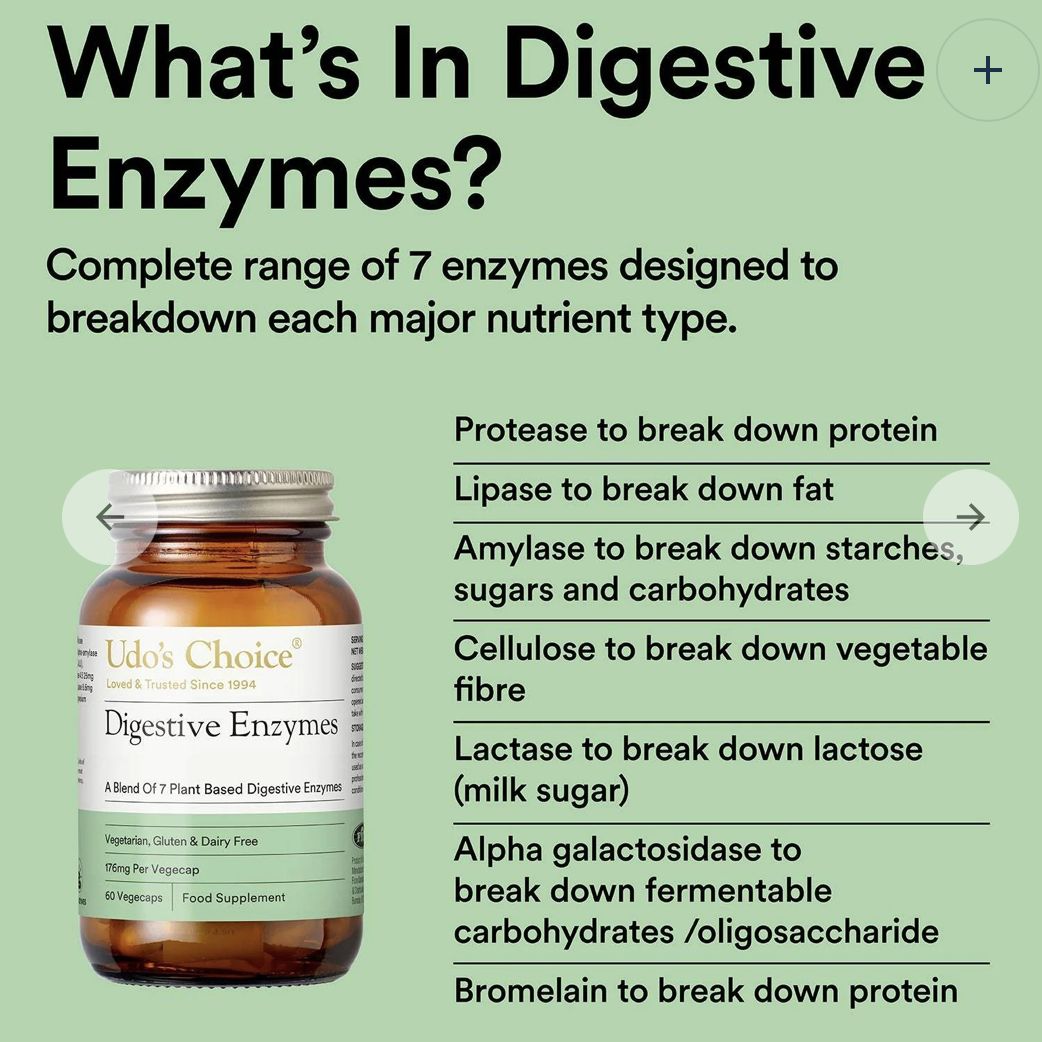 Udos Choice Digestive Enzyme blend is great for athletes who consume a large amount of food (triathletes, runners, cyclists, and bodybuilders) and ideal for supporting vegetarian diets high in beans and pulses that can be hard to break down naturally.